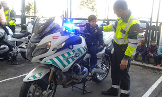 Antes de irnos a almorzar hemos podido ver y montarnos en los coches y motos; aquí el papá de Leyre L. que también es guardia civil nos los ha mostrado.